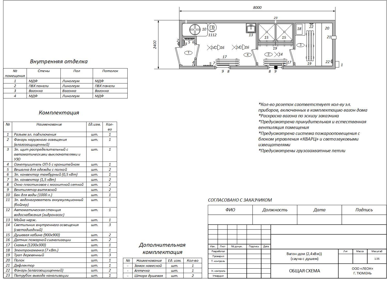 Вагон-дом (8х2,5м) Сауна с душем на 2 кабины
